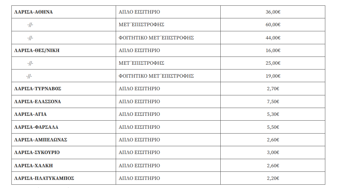 Το Υπεραστικό ΚΤΕΛ Λάρισας ενημερώνει το επιβατικό κοινό ότι από την Παρασκευή 13 Μαρτίου 2026 τίθεται σε ισχύ αύξηση 10% στις τιμές όλων των εισιτηρίων.